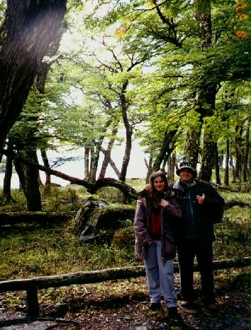 Marzo de 2002. Ile y Carlos en el bosque de Bahía Onelli en el Parque Nacional Los Glaciares, Calafate, Santa Cruz.