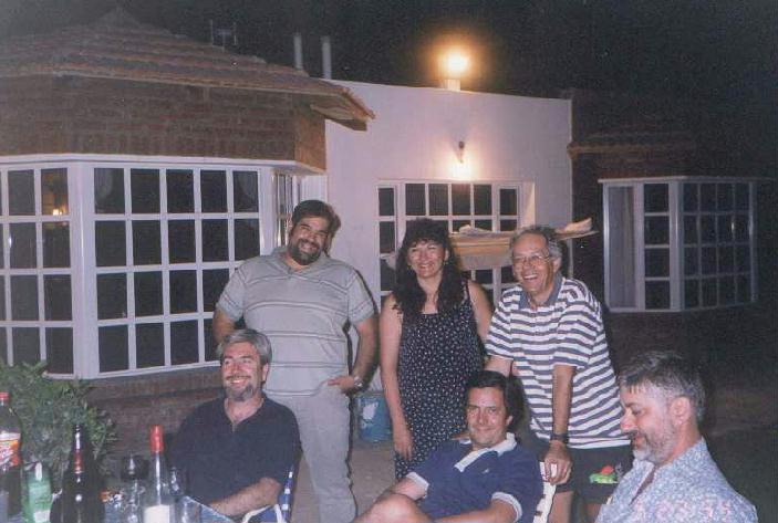 Puerto Madryn, Febrero de 2001. Gran reunión para agasajar a la chaqueña Silvia. Parados: Mario, Silvia y Viñas. Sentados: Simo, Carolo y Carlos Nacher.