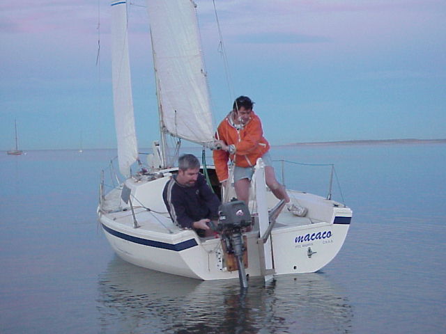 Puerto Madryn, marzo de 2001. El capitan Simo y el marinero Carolo en el Macaco.